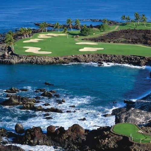 The multi-award winning Mauna Kea Golf Course has led the way in standards of course beauty and design since 1964, solidifying its place in Hawaii's history as one of the most scenic and favored golf courses. The spectacular signature hole is the famous third, where surging inlet water races to meet the rocky shoreline, affording one of the most dramatic and breathtaking views of any course today.